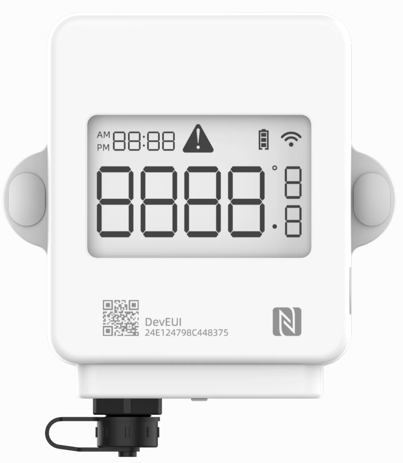 Sensor temperatury w obudowie IP65, wyposażony w lokalny wyświetlacz LCD i sondę PT100. Wykrywa temperaturę, a następnie wysyła te dane za pośrednictwem bezprzewodowego protokołu dalekiego zasięgu LoRaWAN.